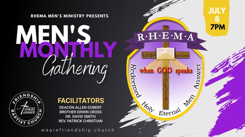Men of Friendship! We continue our monthly gathering this Monday at 7:00pm.