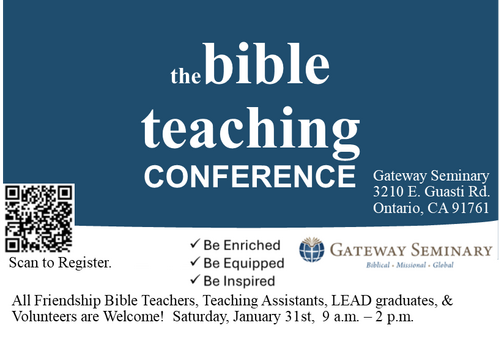 Bible Teachers, LEAD Graduates, and Christian Education Ministry Volunteers are invited! Join us for this one-day conference, designed to provide encouragement and training. Conference will be held at Gateway Seminary on Saturday, January 31, 2026. click to register.