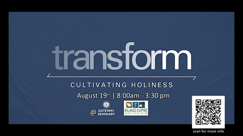 I am excited to announce Gateway Seminary’s Transform Conference 2023! The Transform Conference is a one-day workshop taking place at Gateway Seminary in Ontario on Saturday, August 19. This year’s theme is Cultivating Holiness. This Conference is designed for ministry leaders and will teach how to cultivate holiness within community.