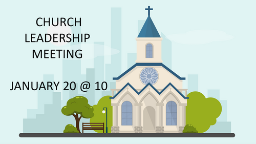Leaders, we have our first Leadership Meeting of the year tomorrow, Saturday, January 20th at 10:00am. Please plan your schedule accordingly. In the Sanctuary. We will be sharing what God is doing and where we are going. Also, please note the church calendar is available online at our website.