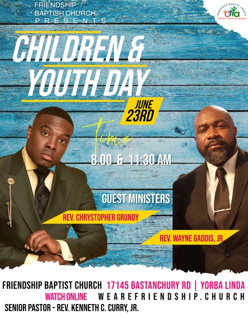This day is also our Children & Youth Day. Come celebrate our children and youth with us. Rev. Chrystopher Grundy will be our guest speaker at the 8am Service and Rev. Wayne Gaddis will be our guest speaker at the 11:30am Service.