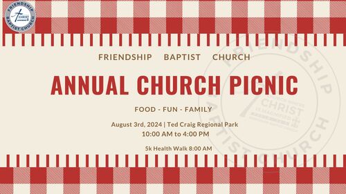 Don’t forget our church picnic on tomorrow, Saturday, August 3rd, at Ted Craig Regional Park from 10 a.m. to 4 p.m. We’ll have food, games, jumpers, and fun for the entire family. All food is included; we just ask you to bring your favorite dessert or a case of water. Before the picnic, join us for our Health Care Ministry’s Annual 5K Health Walk at 8 a.m. It’s going to be a great day, so come ready to enjoy!