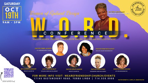The theme for this year’s conference is Kingdom Women: Pressing In When You're Waiting, Wanting, and Restless for More. We are excited and waiting with tip-toe anticipation as our special guests and beloved sisters in ministry join us with a Timely Word and Timely Teaching.