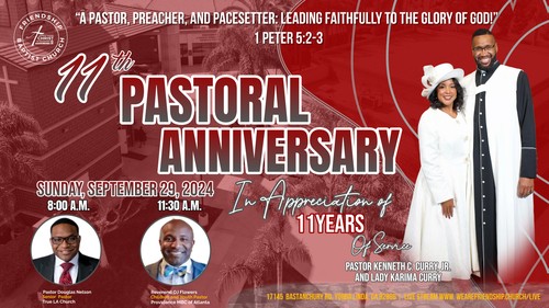 The Friendship Baptist Church, Yorba Linda, CA, is thrilled to announce the 11th Pastoral