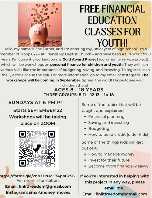 FINANCIAL EDUCATION CLASS FOR YOUTH PRESENTED BY ONE OF OUR YOUTH: