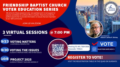 our own Deacon James Shirley and others will help us explore some of the issues that will be on our ballots this year.