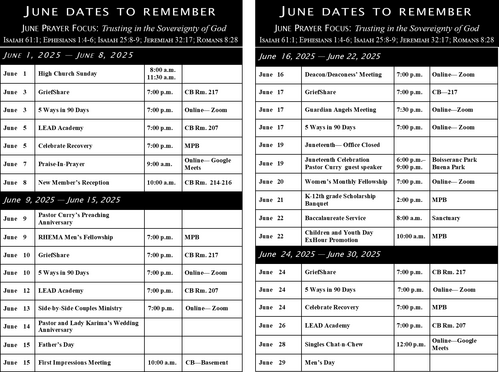 - JUNE PRAYER FOCUS: