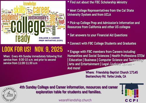 Where: Friendship Baptist Church 17145 Bastanchury Rd., 92886