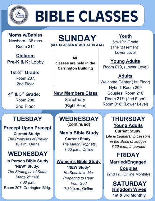 GriefShare resumes here at Friendship on January 20, 2026. Please consider joining us as we navigate this journey together. You can register by going to the church website, select connect then ministry then Outreach scroll down to GriefShare click the logo and then search for current group.