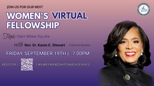 Kingdom Women – Join us for our Virtual Women’s Ministry Monthly Fellowship on Friday, September 19th at 7:00 p.m. Our guest, Rev. Dr. Karen E. Stewart, will teach about how you can Start Where You Are based upon the book Now and Not Yet: Pressing in When You’re Waiting, Wanting, and Restless for More by Ruth Chou Simons.