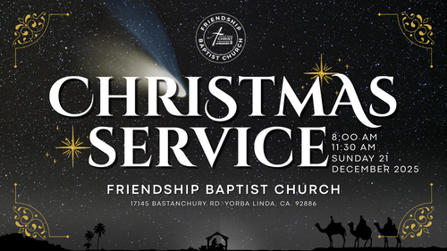 You may give HERE. If you send or give with a check please make your checks payable to : Friendship Baptist Church of Yorba Linda