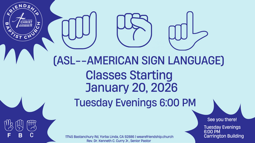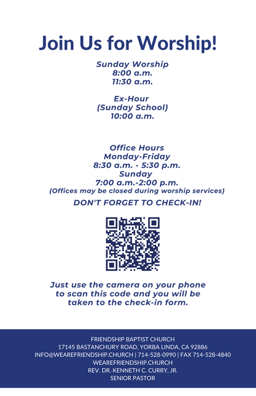 Where: Friendship Baptist Church 17145 Bastanchury Rd. Yorba Linda, CA, 92886