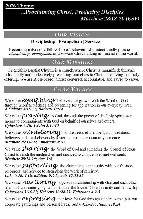 GriefShare resumes here at Friendship on January 20, 2026. Please consider joining us as we navigate this journey together. You can register by going to the church website, select connect then ministry then Outreach scroll down to GriefShare click the logo and then search for current group.