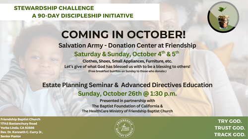 This is an 8-week course designed to acclimate new members of FBC to church history, beliefs, doctrines, ministry opportunities, and operations.